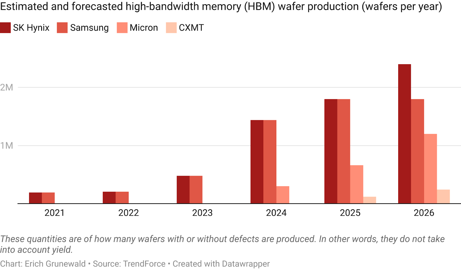 This concentration in HBM production reflects decades of global competition that left South Korean and US companies in command; Chinese players like ChangXin Memory Technologies (CXMT) are still racing to catch up.